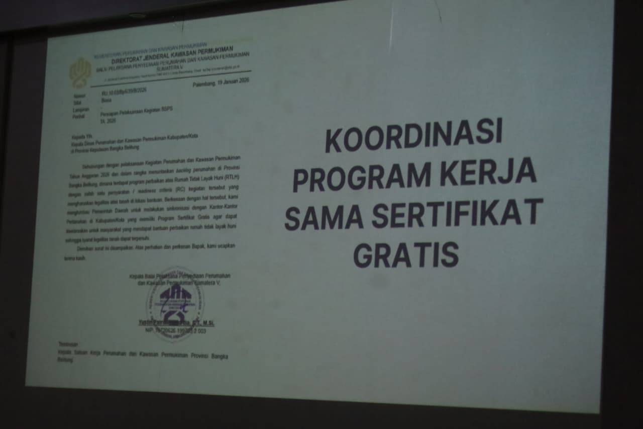Dalam paparan Kadis Perkim, Bellly Jawari, penanganan rumah tidak layak huni merupakan bagian dari Program Strategis Nasional pembangunan tiga juta rumah. Dari target nasional tersebut, satu juta rumah dialokasikan untuk kawasan perkotaan, termasuk Pangkalpinang, dengan sasaran utama masyarakat berpenghasilan rendah.