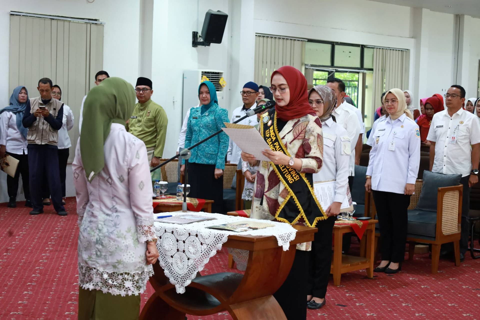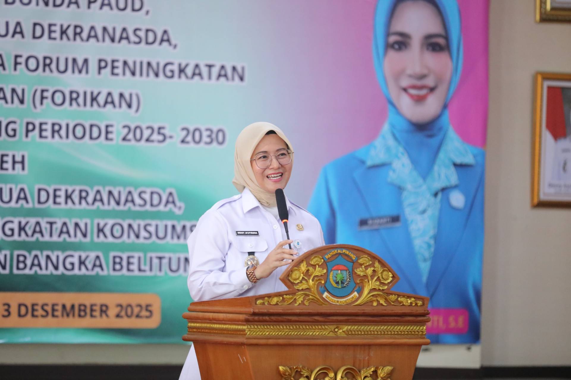 PANGKALPINANG — Wakil Wali Kota Pangkalpinang Dessy Ayutrisna menghadiri Pengukuhan Bunda PAUD, Pelantikan Ketua Dekranasda, dan Ketua Forikan Kota Pangkalpinang Periode 2025–2030, di Balai Besar Betason, Kantor Wali Kota Pangkalpinang, Rabu (3/12/2025).