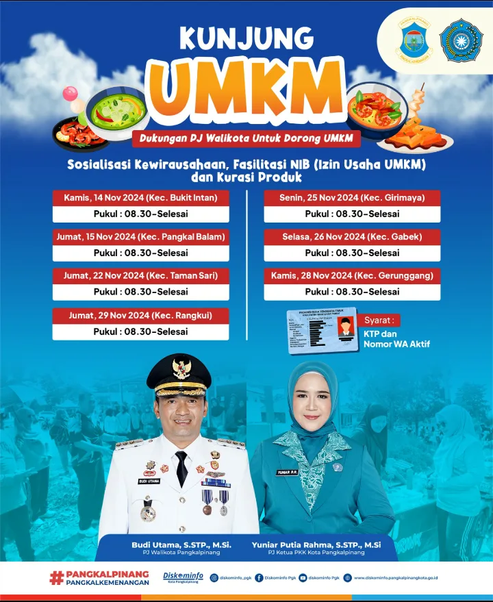 Satu lagi inovasi digagas Penjabat (Pj) Wali Kota Pangkalpinang, Budi Utama, yang ia beri nama “Kunjung UMKM”. Ia ingin program tersebut menegaskan bahwa Pangkalpinang hadir sebagai kota yang ramah bagi para wirausahawan.