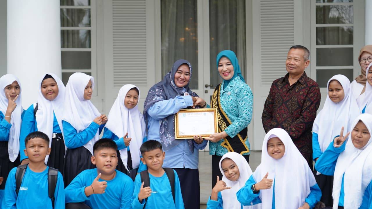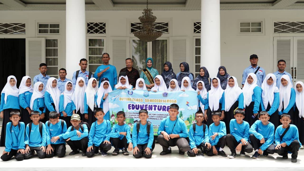PANGKALPINANG, DISKOMINFO – Kunjungan edukatif dilakukan siswa SD Negeri 16 Koba ke Rumah Residen Wali Kota Pangkalpinang, Rabu (15/4/2026). Kedatangan para siswa disambut hangat oleh Ketua TP PKK Kota Pangkalpinang yang juga Bunda Literasi, Bunda Hj. Susanti Saparudin, S. E.