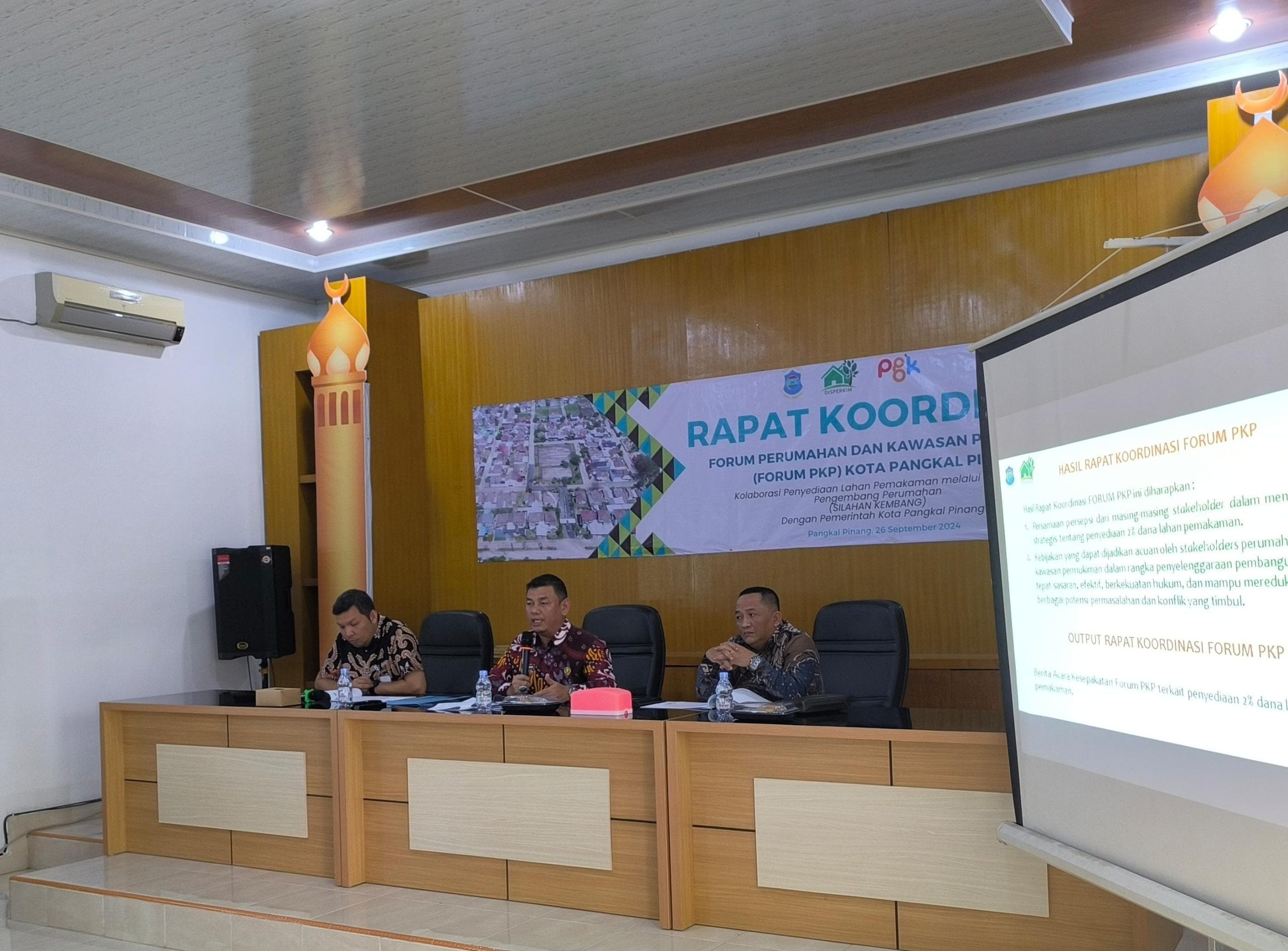 Rapat ditujukan untuk melakukan koordinasi penyediaan lahan pemakaman melalui kemitraan pengembang perumahan (Silahan Kembang) dengan Pemerintah Kota Pangkalpinang.