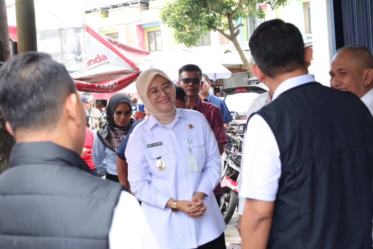 PANGKALPINANG, DISKOMINFO – Wakil Wali Kota Pangkalpinang, Dessy Ayutrisna turut melakukan inspeksi mendadak (sidak) harga kebutuhan pokok di Pasar Pembangunan Pangkalpinang, Rabu (17/12/2025).