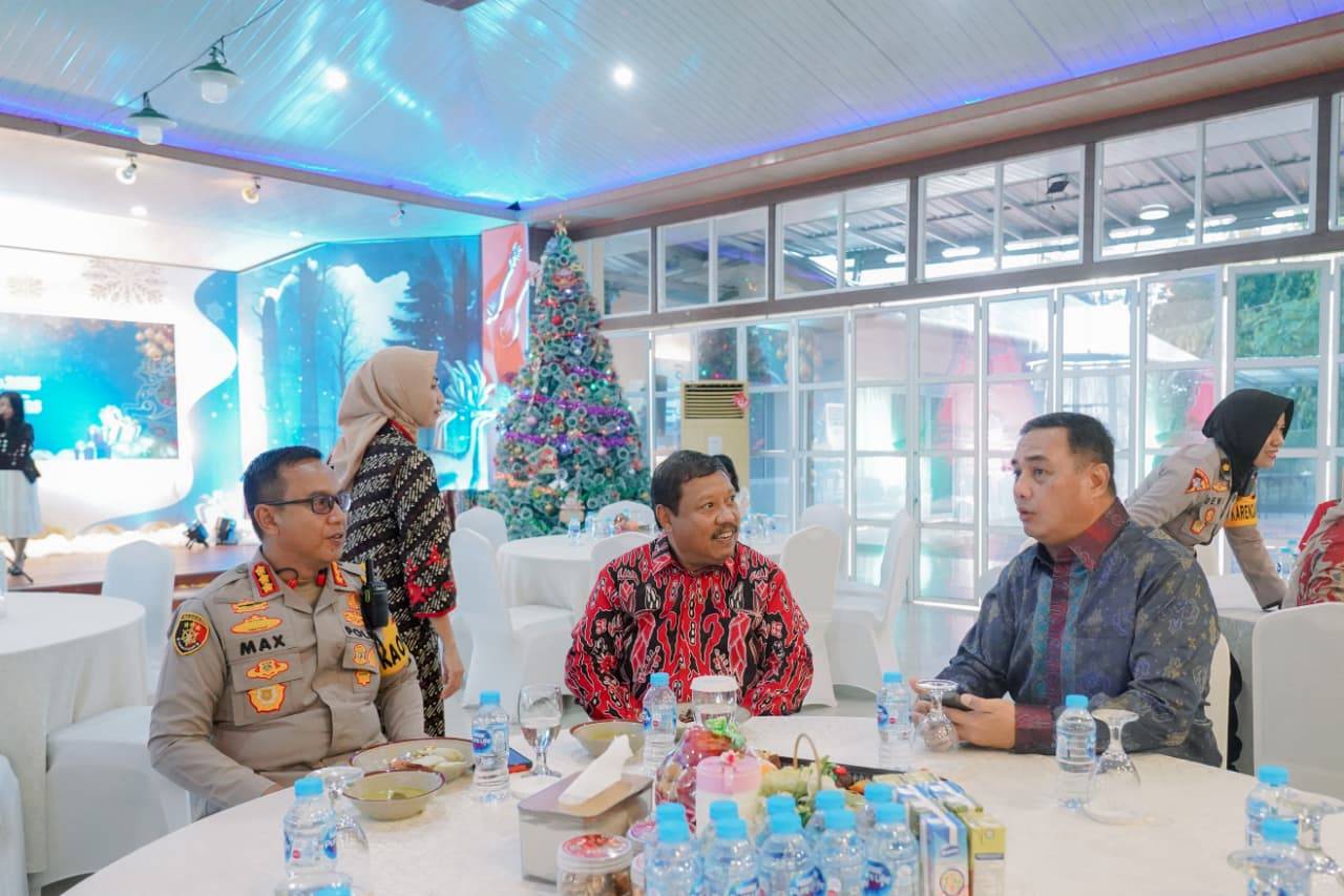 PANGKALPINANG,DISKOMINFO – Wali Kota Pangkalpinang Prof Saparudin bersama Wakil Wali Kota Dessy Ayutrisna, menghadiri undangan Kapolda Kepulauan Bangka Belitung Irjen Pol Viktor, dalam perayaan Natal yang digelar di kediaman rumah dinas Kapolda Babel, Kamis (25/12/2025).
