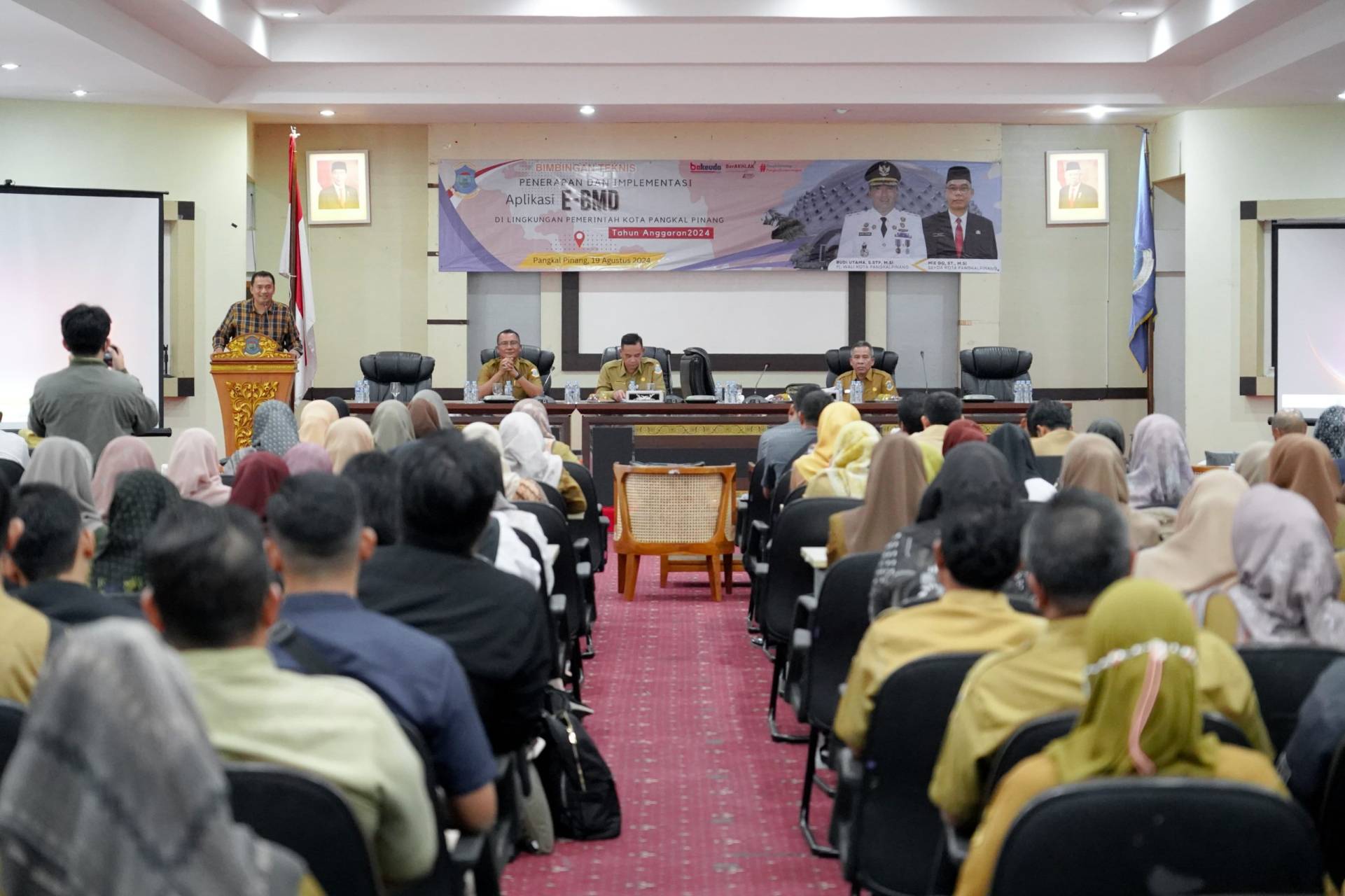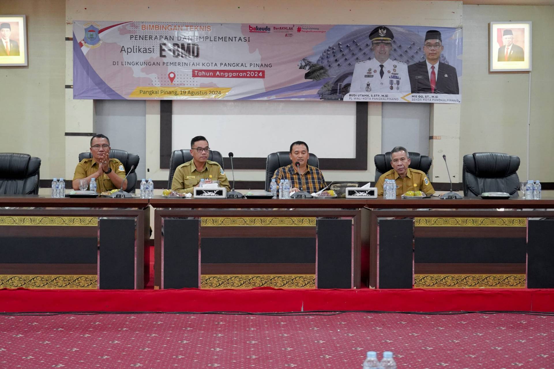 PANGKALPINANG, DISKOMINFO – Penjabat Wali Kota Pangkalpinang, Budi Utama menjadi narasumber kegiatan bimbingan teknis penggunaan aplikasi E-BMD untuk penyusunan laporan BMD di Ruang Pertemuan OR Kantor Wali Kota Pangkalpinang, Senin (19/8/2024).