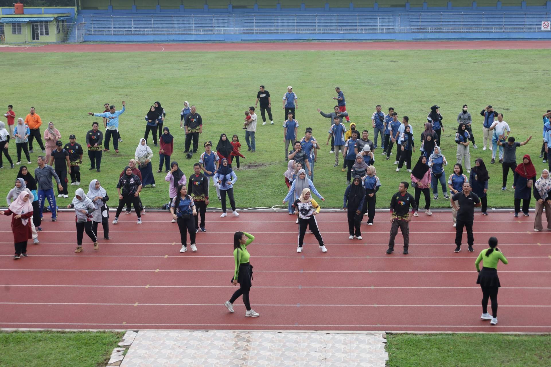 Pj Walikota dan Sekda Senam Bersama Ratusan ASN Kota Pangkalpinang Sekaligus Serahkan Santunan Terhadap Anggota KORPRI Purna Bakti