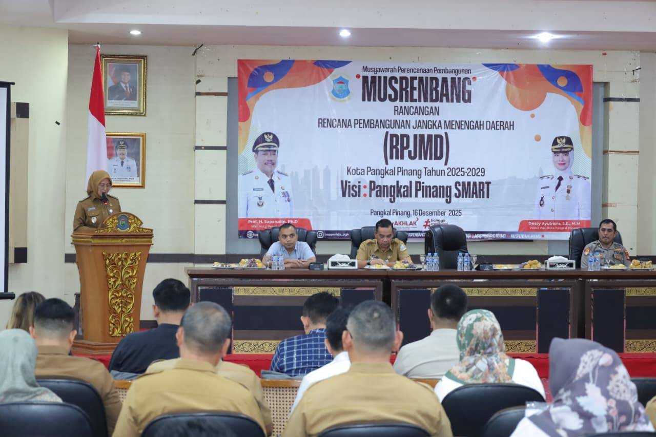PANGKALPINANG – Wakil Wali Kota Pangkalpinang Dessy Ayutrisna, atau Cece Dessy membuka rapat Rencana Pembangunan Jangka Menengah Daerah (RPJMD) yang berlangsung di Ruang Betason, kantor Wali Kota Pangkalpinang, Selasa (16/12/2025).