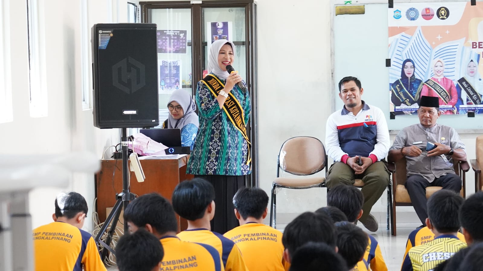 PANGKALPINANG, DISKOMINFO – Bunda Literasi Kota Pangkalpinang yang juga Ketua TP PKK Kota, Susanti Saparudin S.E, menghadiri sekaligus membuka secara resmi Pelatihan Literasi Digital, Sastra, dan Baca Tulis dalam Program Wisata Literasi (WL) yang diselenggarakan oleh Perpustakaan Chion TP PKK Kelurahan Pasir Putih di SMP Pembinaan Pasir Putih, Jumat (22/11/2025).