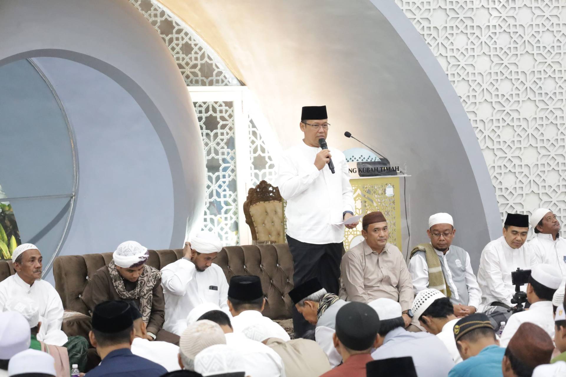 PANGKALPINANG, DISKOMINFO – Tabligh Akbar Maulid Arbain 1446 Hijriah sekaligus doa bersama untuk Pilkada damai berlangsung di Masjis Agung Kubah Timah, Senin (14/10/2024) malam. Acara ini diselenggarakan oleh Badan Pelaksana Masjid Agung Kubah Timah Pangkalpinang dan dihadiri oleh berbagai tokoh penting, termasuk Penjabat (Pj) Wali Kota Pangkalpinang, Budi Utama.