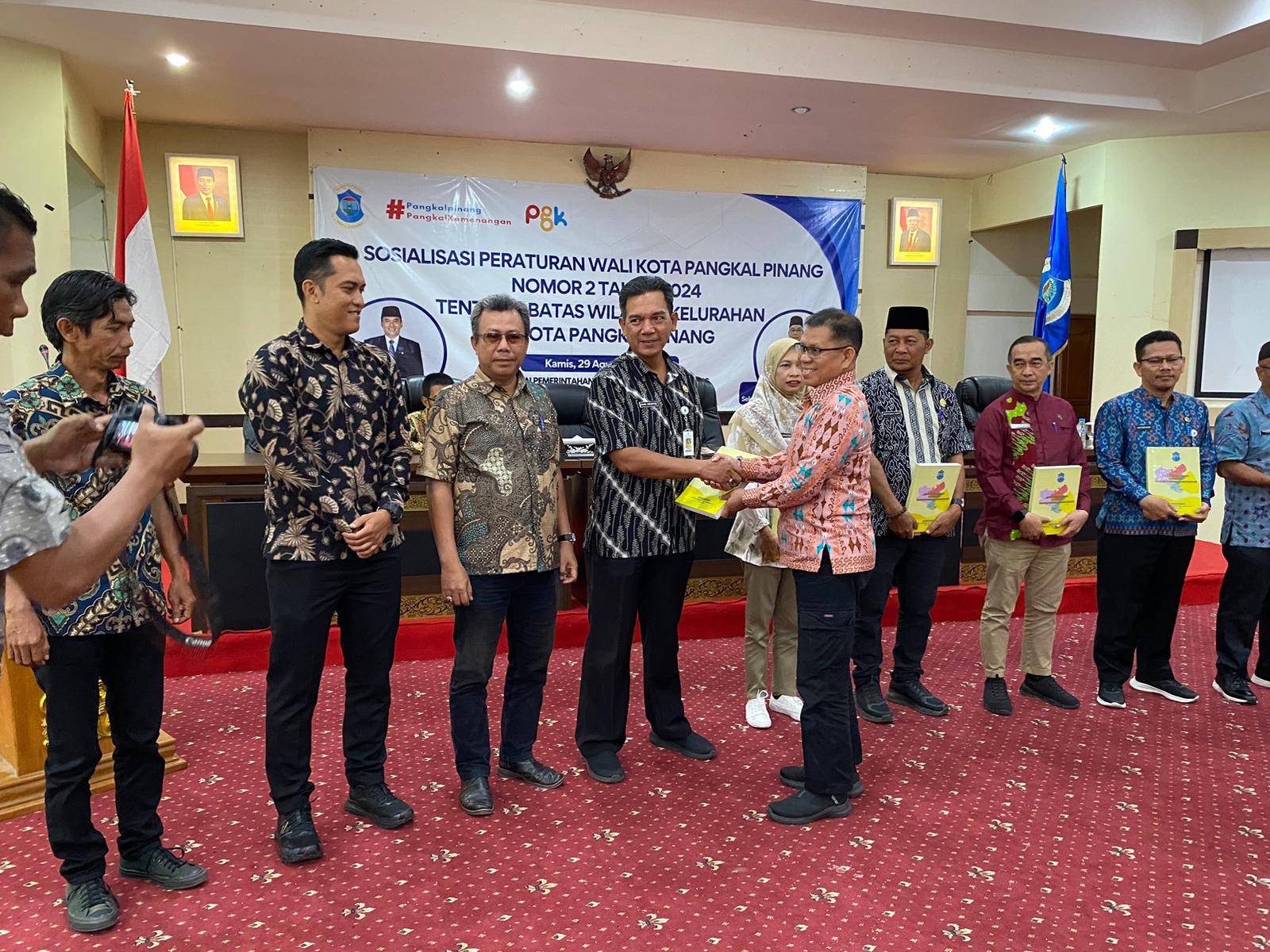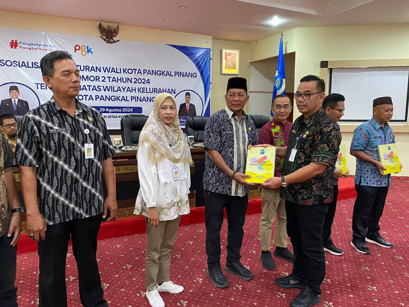 PANGKALPINANG, DISKOMINFO – Pemerintah Kota Pangkalpinang melalui Bagian Pemerintahan menggelar sosialisasi Peraturan Wali Kota Pangkalpinang nomor 2 tahun 2024 tentang batas wilayah kelurahan di Kota Pangkalpinang di Ruang Pertemuan OR Kantor Wali Kota Pangkalpinang, Kamis (29/8/2024).